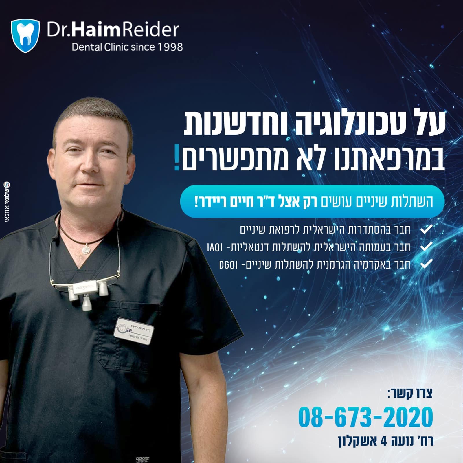 ד"ר חיים ריידר DMD סיים את לימודי רפואת השיניים בשנת 1998
